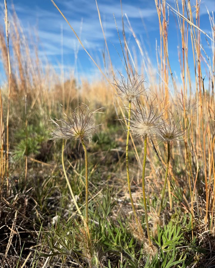 Wildflower season is approaching! Pasque flower (Pulsatilla vulgaris) - originally mis-identified as prairie smoke (Geum triflorum)! - is an early blooming specimen - and a good sign that other colorful varieties are on their way. Surrounding the prairie smoke is little bluestem (Schizachyrium scoparium), another prairie native. Thanks to Senior Program Manager Lars Anderson for sharing! #americanprairie #prairiesmoke #littlebluestem #wildflower (fb)