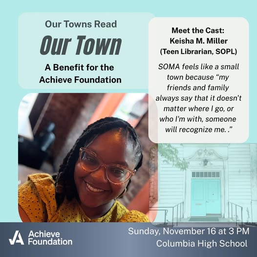 Meet the Cast: Teen Librarian at the South Orange Public Library, Keisha M Miller. #ourtownsreadourtown #achievewithus #connectingcommunitytoclassrooms (fb)
