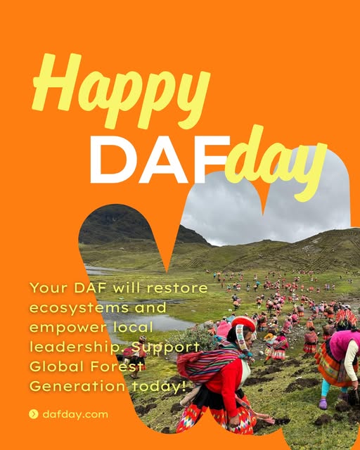 Today your DAF will restore ecosystems like never before. It’s DAF Day 2025—a nationwide celebration of generosity through Donor-Advised Funds. When you make a DAF gift to GFG today, you’re helping us protect life for future generations. Here’s how you can take part: ✅ Decide which organizations to support with your DAF - like Global Forest Generation to help ecosystem restoration ✅ Give easily and get counted in today's impact by giving through DAFpay.com and selecting Global Forest Generation ✅ Celebrate the power of giving together by spreading the word 🧡 Today your DAF can do more than ever before. Join us and be part of the movement. 👉 Give now:https://app.dafday.com/donate/org_404949ab0c9hvvvp6hnp8ch0tj #DAFDay2025 #GlobalForestGeneration #ecosystemrestoration #climatechange #climatesolutions #givingtogether #philanthropy (fb)
