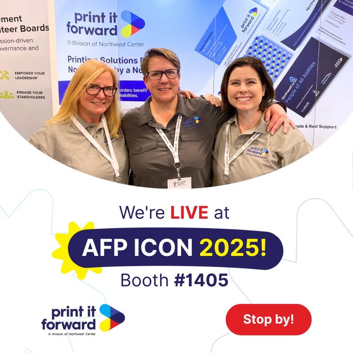 Through Print it Forward, every print order helps fund Northwest Center programs that empower children and adults with disabilities. 100% of profits go directly toward building a more inclusive world for people of all abilities. Stop by Booth #1405 to meet the team, explore nonprofit-friendly print solutions, pick up some swag, and discover how your partnership can drive real impact. 💡🖨️ #PrintWithPurpose #DisabilitySupport #AFPICON2025 (fb)