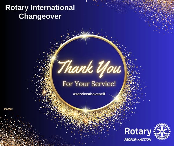 Our sincere gratitude to Val Hatley and his team for leading us through this past Rotary year! Looking forward to July 1 when Julie Todd will take the helm. We will celebrate together at our annual “Debunking” Party on June 27. #ServiceAboveSelf (fb)