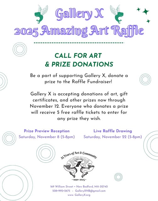 Help support the programming and operations of Gallery X, donate a prize to the 2025 Amazing Art Raffle fundraiser! https://www.galleryx.org/2025-amazing-art-raffle/ Raffle donations can be submitted during regular gallery hours (Wednesdays–Fridays 11-4pm & Saturdays/Sundays 12-3pm) or by appointment now through November 12. (fb)