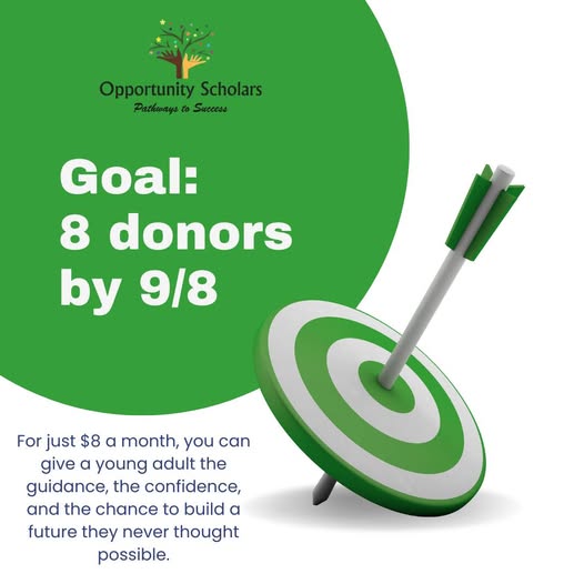 Not every young adult knows what comes next. Some are working, some are drifting — all of them hoping for direction. With just $8/month, you can help us offer that hope. Career coaching that builds confidence, opens doors, and restores belief in a future that works. So far, only 2 people have said yes. We're hoping for 6 more by Sept. 8. You can be the reason someone finally sees their next step. 💛 Join us: https://www.zeffy.com/en-US/donation-form/start-with-8-monthly-giving-launch #StartWith8 #8for8 #GiveHope #OpportunityScholars (fb)