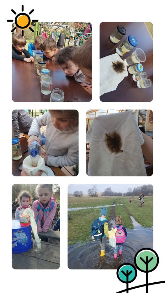 Mezinárodní den VODY jsme v lesní školce oslavili sérií pokusů v přírodě 💦 Naše děti si ověřily, že voda umí cestovat proti gravitaci - ze spodního okraje kalhot po ponožkách nahoru 😅 Prozkoumaly na vlastní oči, že na pití se hodí jen některá voda a že znečištěná voda nemusí být na první pohled poznat. A porovnaly si čistotu vody z nejbližších vodních zdrojů v okolí školky. (fb)
