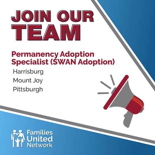 Families United Network is hiring for a Permanency Adoption Specialist in several of our offices. If you're looking for a meaningful career where you can change lives and make a lasting impact, this is your chance. ✅ Why Join Us? - Play a vital role in supporting children and families. - Enjoy a supportive, team-focused work environment. - Opportunities for personal and professional growth. 📢 Take the first step towards a rewarding career. Apply today or tag someone who’d be perfect for this role! 👉 Click here to learn more and apply now: https://bit.ly/4i5zIbl #HiringNow #FamiliesUnitedNetwork #MakeADifference (fb)
