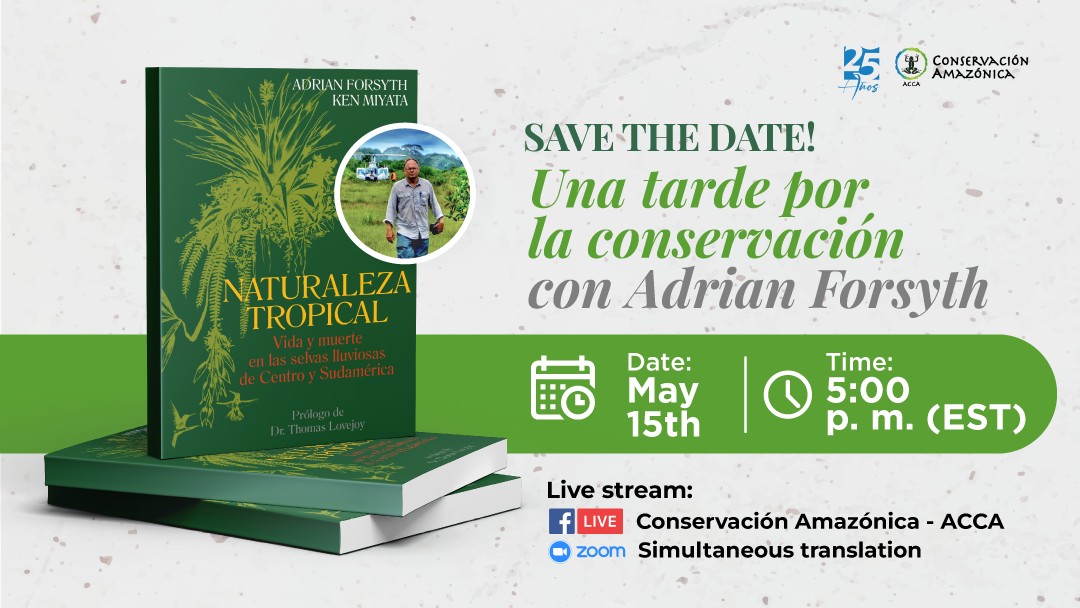 Join us TODAY at 5:00 p.m. (EST) for “An Afternoon for Conservation” with Amazon Conservation founder Dr. Adrian Forsyth! 🌿 ✨ You’re invited to our exclusive presentation on the Spanish edition of his iconic book Tropical Nature, a work that transforms the complexity of tropical forests into captivating stories! 🔗 Don’t miss out! Register here: https://bit.ly/unatardeporlaconservacion 📡 Live stream via Conservación Amazónica – ACCA's Facebook and Zoom (with simultaneous English translation). #TropicalNature #AmazonConservation #ecology #biodiversity #conservation (fb)