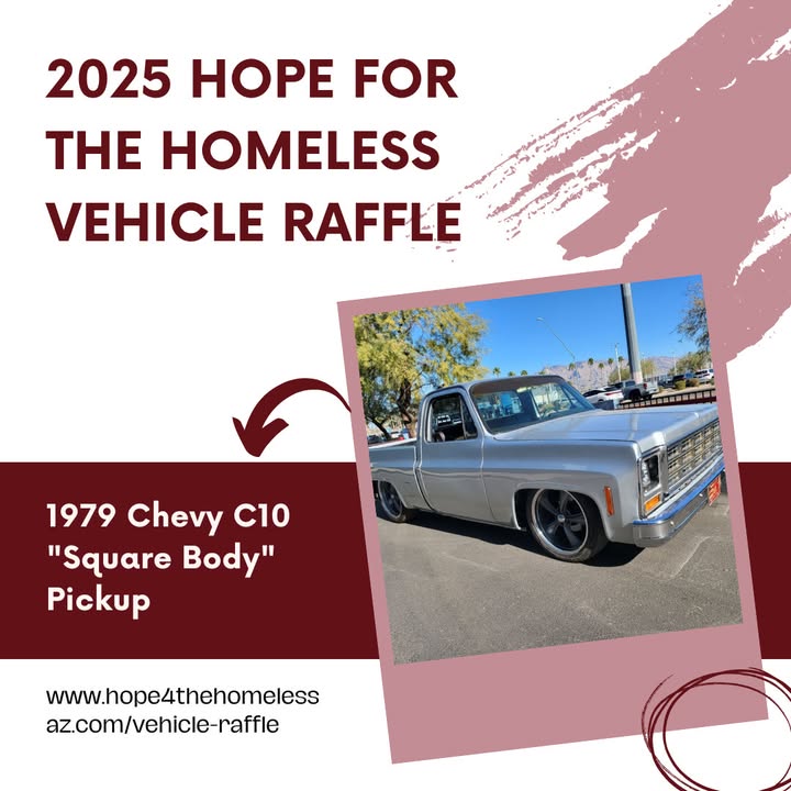 We're raffling off a CUSTOM-BUILT 1979 Chevrolet C10 "Square Body" pickup! Every dollar supports our mission to help homeless. Not local? No worries! You don’t have to be present to win. What are you waiting for? Don't you want this ride? 📲 https://www.hope4thehomelessaz.com/ (fb)