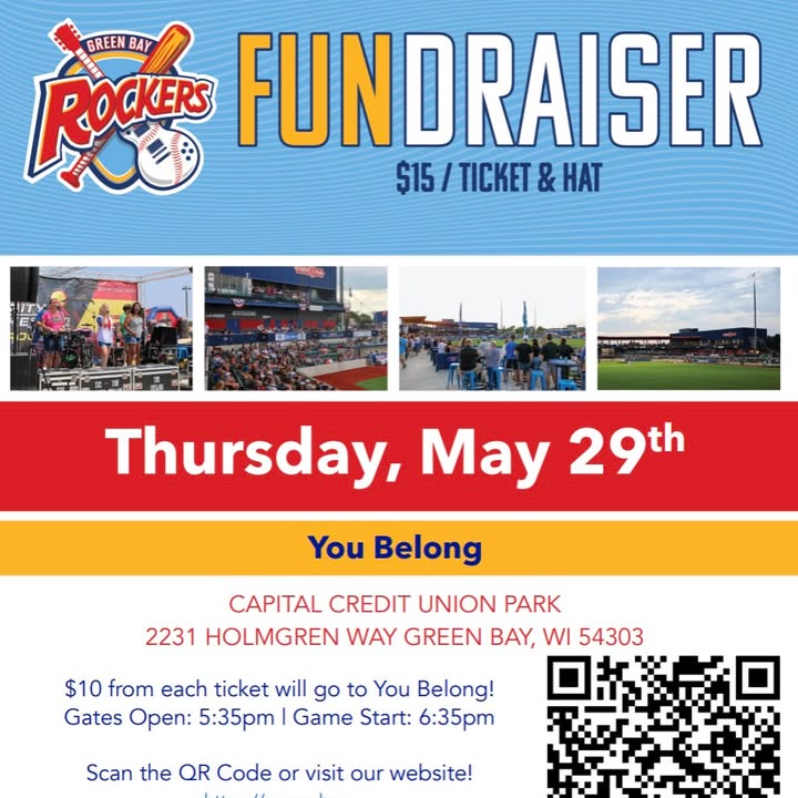 5/29 - ⚾️It's not too late to get your tickets to cheer on the Green Bay Rockers and support You Belong! Tickets are $15 with $10 of those dollars going directly to support our vision and mission here at You Belong! Order your tickets now! https://green-bay-rockers.nwltickets.com/Tickets/SelectPromoSeats?PromoCode=youbelong (fb)