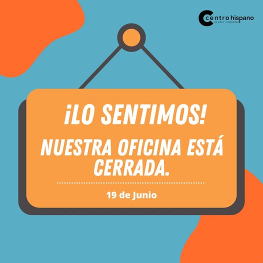 Centro Hispano estará cerrado el día de hoy, 19 de Junio, en celebración del Día de la Liberación. ¡Nos vemos pronto! . . . Centro Hispano will be closed today, June 19th, in celebration of Juneteenth. See you soon! (fb)