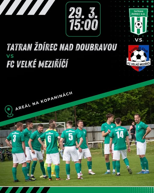 ‼️V sobotu hrajeme doma ‼️ První domácí utkání jarní části sehrajeme doma 29.3. proti Velkému Meziříčí. Začátek zápasu je v 15:00. Těšíme se na Vás 💚 🤍 (fb)