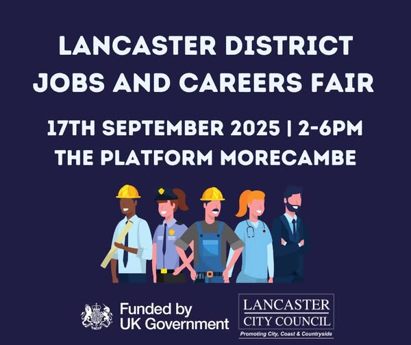 Are you looking for a new career or to develop your professional skills?🎓 Join us at the Lancaster District Jobs and Careers Fair at The Platform in Morecambe on Wednesday, September 17 from 2pm to 6pm. There’s something for everyone as employers and skills providers from a wide range of industries will be attending, including: health, environment, military, leisure, logistics, retail, technology, and sustainable energy. To book your free ticket and learn what organisations will be present, please visit: https://loom.ly/Nf43_cw #jobs #careers #lancaster #morecambe (fb)