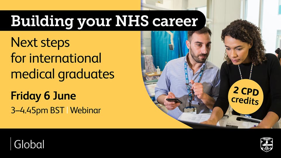 Just a few weeks to go until our webinar ‘Building your NHS career: next steps for international medical graduates’. Are you an international medical graduate working in the #NHS and unsure how to proceed in your career? Register for our webinar and learn all about: 🟡your career opportunities in the NHS 🟡postgraduate training options 🟡getting the most out of your ePortfolio 🟡engaging effectively with your supervisor. Sign up now and spread the word: https://ow.ly/mYb750VRAnU (fb)