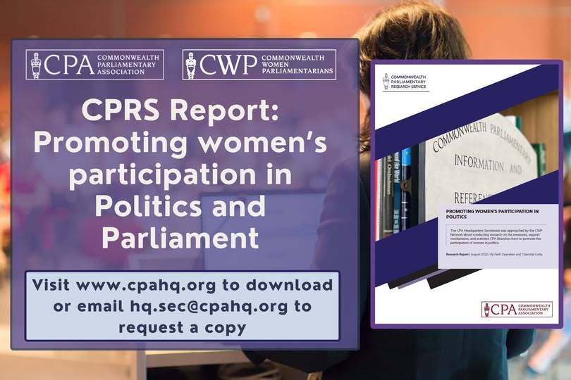 New research report highlights activities relating to Women’s Political Participation in the Commonwealth Many Commonwealth jurisdictions are implementing measures to increase women’s participation in politics, particularly in Parliament. These measures include reserving seats for women, establishing quotas within political parties, creating women’s political networks and enacting electoral reforms. Several factors influence women’s political participation, but access to financial resources - both direct and indirect - plays a crucial role in their decision to run for office. Support can come from various sources - including civil society organisations, political parties and academic institutions – and support mechanisms can take different forms, such as training programmes, mentorship opportunities, campaign funding and networking events. The new research report ‘Promoting women’s participation in Politics and Parliament’ has been completed by the CPA’s Commonwealth Parliamentary Research Service (CPRS) in response to a request from the Commonwealth Women Parliamentarians (CWP) network to gather information, case studies and resources for women who are interested in politics, wish to run, who are running and who have been elected. Download and read the report ⬇️ https://www.cpahq.org/media/gtiomy25/cprs-report-women-participation-in-politics-aug-2025.pdf (fb)