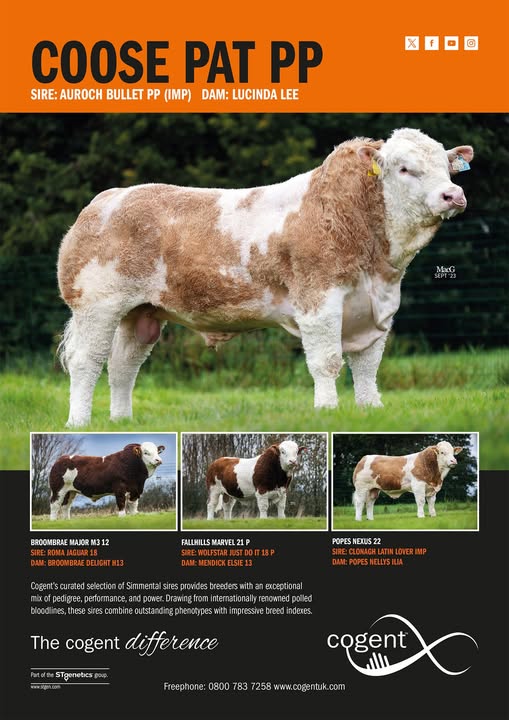 ⭐️COGENT SIMMENTAL PORTFOLIO⭐️ ✅We continue our series of profiled adverts with Cogent UK who operate the country’s largest bull stud and ‘offer the strongest, most diverse portfolio of bovine genetics available on the UK's genetics market today’. 🐂The Cogent advert highlights their exclusive portfolio of Simmental sires which they say ‘offers the modern-day breeder an unrivalled combination of pedigree, performance and power. Influenced by globally respected, polled bloodlines, the range boasts eye-catching phenotype and high-ranking breed indexes’. Highlighted within the advert are the following bulls: 💥Coose Pat (PP) https://i4.abri.au/online/cgi-bin/i4.dll?1=3E373E37&2=2420&3=56&5=2B3C2B3C3A&6=275A5C262159242126&9=5D52595C 💥Fallhills Marvel 21(P) https://i4.abri.au/online/cgi-bin/i4.dll?1=3E373E37&2=2420&3=56&5=2B3C2B3C3A&6=275A5C2625212F2F2E&9=5D52595B 💥Broombrae Major M3 21 https://i4.abri.au/online/cgi-bin/i4.dll?1=3E373E37&2=2420&3=56&5=2B3C2B3C3A&6=275A5C26252358222D&9=5D52595A 💥Popes Nexus 22 https://i4.abri.au/online/cgi-bin/i4.dll?1=3E373E37&2=2420&3=56&5=2B3C2B3C3A&6=275A5C2623272F2520&9=5D525959 ☎️For more information on Cogent’s Simmental range, call: Freephone: 0800 783 7258 and Web: www.cogentuk.com 👌The British Simmental Cattle Society continues to thank all of the breeders and commercial companies that supported The British Simmental Review publication. Cogent Breeding Ltd Cogent Signature Beef @top fans @followers Scottish Simmental Club NI Simmental Cattle Breeders Club Midlands Simmental Club North West Simmental Breeders' Club North East Simmental Club South East Simmental Group Cornwall Simmental club South West Simmental Club East Anglian Simmental Club Welsh Simmental Club (fb)