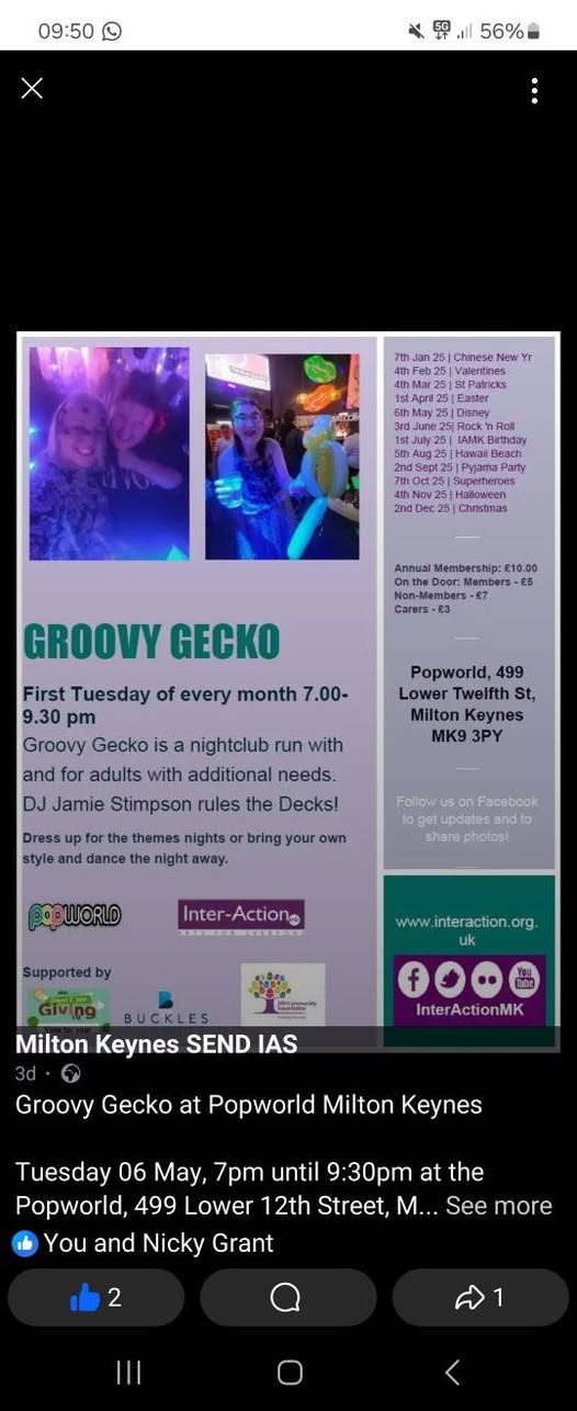 1 more sleep until Groovy Gecko Yay! Join us for our Disney themed night on Tuesday 6th of May at Popworld! Doors open at 7pm until 9.30pm £5 Members £7 Non Members £3 Carers Cash only for tickets but you can use card for drinks! We hope to see you all there for dancing a fun 😀 (fb)