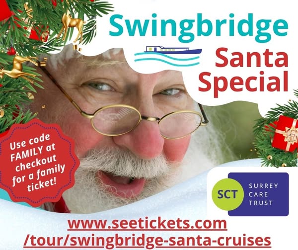 Tickets are now on sale for the celebrated Swingbridge Santa! Book your tickets now. https://www.surreycaretrust.org.uk/event/activities-swingbridge-santa-boat-cruise-guildford-2025/ #SwingbridgeSanta #FamilyEvents #SantaVisit (fb)