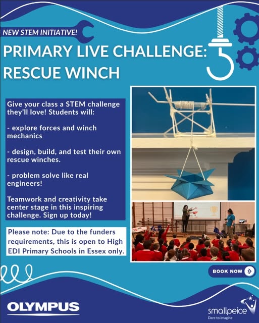 Reminder! Olympus Primary Live is filling up fast. This is your chance to bring an exciting hands-on STEM challenge to your students. They will design, build, and test a rescue winch while developing teamwork, creativity, and problem-solving skills. ✅ Open to Primary schools in Essex ✅ Kits sent 2 weeks in advance ✅ Live interactive session with expert engineers Sign up by 30th May to give your school a chance to take part! places are left! Apply now 👉 https://www.smallpeicetrust.org.uk/stem-activities/primary-school-activities (fb)