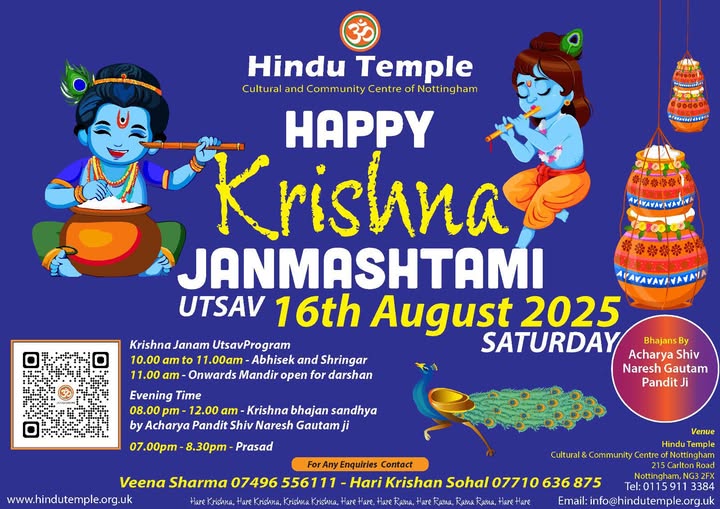Janamashtami Festival at Hindu Temple Nottingham. 16 August (SaturdaGujarat Samaj NottinghamaNottingham Bengali Associationm@top fansASanatan Dharma 'सनातन धर्म'n Dharma 'सनातन धर्म' (fb)