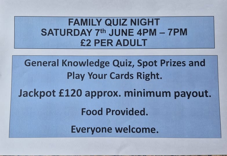 Come and join us on Saturday from 4pm for the quiz. (fb)