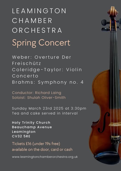 Looking forward to our concert on Sunday - 3.30pm, Holy Trinity Leamington Spa (tickets £16, free for under-19s), and we can't quite get over quite how wonderful this symphony is. The violin concerto is very special too and rarely performed, so do take the opportunity! And as ever, there will be tea and cake. (fb)