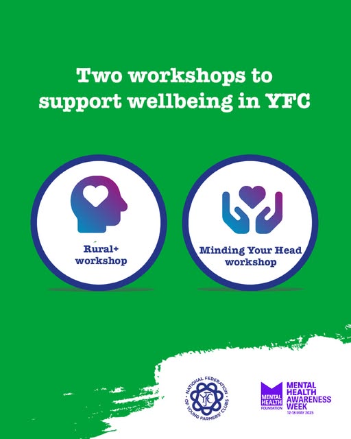 Want to boost your club’s wellbeing and support each other better? Run these two workshops at a future meeting to help your YFC members' mental health. Minding Your Head ✔️Understand the importance of looking after your mental health and how it can affect your ability to farm safely ✔️Know the signs and symptoms of someone struggling with their mental health ✔️Know how to start a conversation about mental health and how to refer someone for help Rural+ ✔️ Understand stress and anxiety; ✔️ Manage personal mental wellbeing; ✔️Talk about mental health in rural areas ✔️Know how to find support and support others. These workshops are all about giving YFC members the tools to look out for each other — and themselves. Ask your club officer how to get involved and make mental health part of the conversation. #MentalHealthAwarenessWeek #ThisismyCommunity (fb)