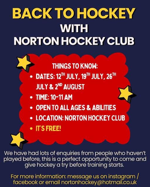#SupportLocalSunday 🏑 Back to Hockey Sessions with Norton Hockey Club. 🎉 Norton Hockey Club is offering free Back to Hockey sessions. These are ideal if you haven’t played in a while or if you’re completely new and would like to give it a try. ⭐️ The sessions are open to all ages and abilities. 📧 For more information email: nortonhockey@hotmail.co.uk #RedHouseSchool #SupportingOurCommunity #NortonHockeyClub #Hockey (fb)