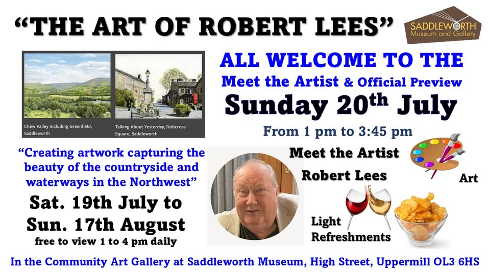 🎨 #artexhibition #meettheartist @followers Free to view new art exhibition until 17th August and ALL WELCOME to meet the artist Robert Lees at the official preview on Sunday 20th July. See https://www.saddleworthmuseum.co.uk/events/ (fb)