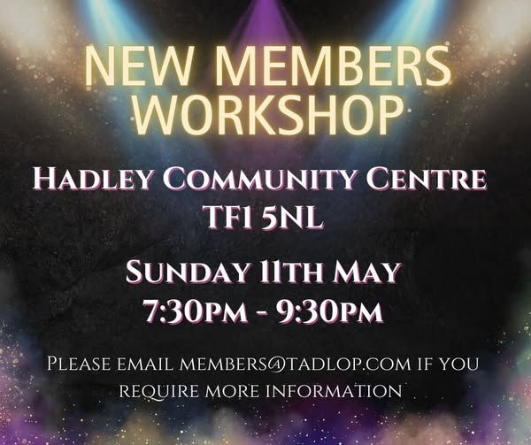 Join us this Sunday for our 'New Members Workshop'. TADLOP welcomes all abilities and ages (over 16 years old). Find out what TADLOP is about and meet the production team for our next show 'Jesus Christ Superstar' 🌟. New members wanting to join us on stage will be expected to partake in singing, dancing and acting workshops during the evening. Off stage memberships are also available. TADLOP rehearses Wednesday and Sunday evenings. For more information please contact members@tadlop.com (fb)