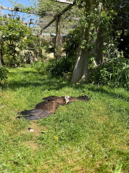 ☀️☀️☀️☀️☀️🥰Thank you Kelly for sharing this photo of one of our Hooded vultures sunbathing just now 🥰🥰 (fb)