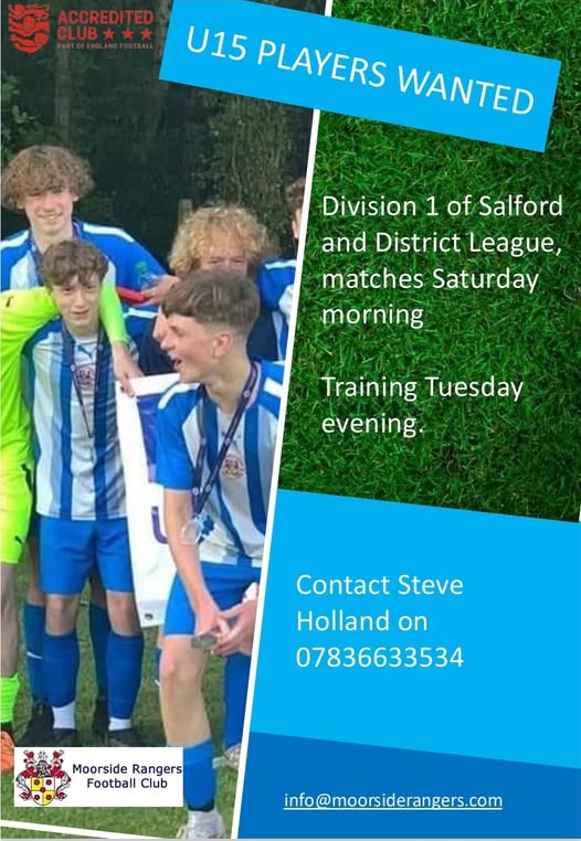 Welcome to Moorside Rangers Football Club Manchester FA County Cup Winners 2025 21. 02. 2025 Our First team celebrate a controlled victory in the Manchester FA Saturday Challenge Trophy 30 against Egerton Football Club. To read more watch the celebrations or re watch the whole game click below Our Teams Foundation Group Sessions for 4 to 6 year olds.