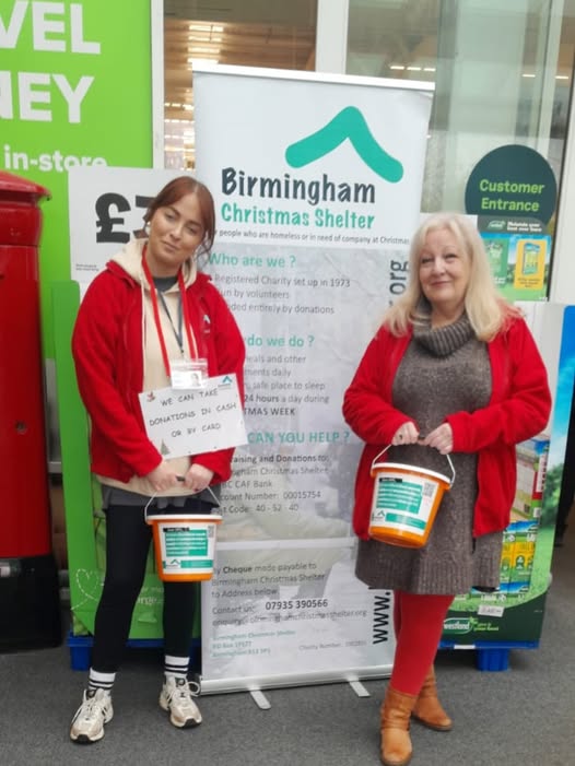 🌞 Morning from Asda Queslett! We’re all set up and ready to go! 🛒❤️ Our brilliant volunteers are out today collecting donations to support Birmingham Christmas Shelter—helping us continue to provide food, warmth, and support to those who need it most. If you’re in the area, pop by, say hello, and drop a few coins in the bucket—every little helps and is hugely appreciated! Thank you to everyone giving their time today—you’re amazing! #BirminghamChristmasShelter #BucketCollection #AsdaQueslett #SupportLocal #MakeADifference #VolunteerPower (fb)