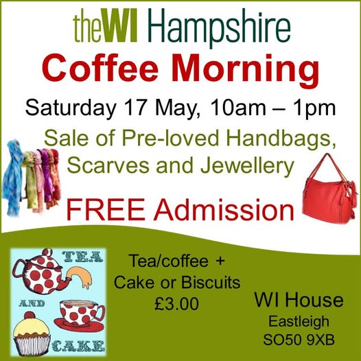 Coffee Morning this Saturday 17 May - Bring your friends Handbags from £5 #hcfwi #thewi (fb)