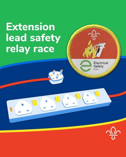We’re proud to partner with Electrical Safety First who are supporting our Fire Safety Activity badges. To get started working on your badge, here's an activity to work on in your Group: Extension lead safety relay race https://bit.ly/46eR15j (fb)