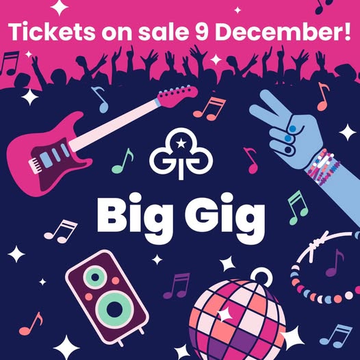 Big Gig is back for two shows on Saturday 10 October 2026 – and it’s bigger than ever! Here’s what you need to know: 🎫 Tickets on sale: Tuesday 9 December 2025 at 6.30pm 🎤 Price: £40 per person 📍 Where: OVO Wembley Arena, London 🎸 Who: Guides, Rangers and their leaders Find out more: https://www.girlguiding.org.uk/what-we-do/events-and-opportunities/events/big-gig/ (fb)