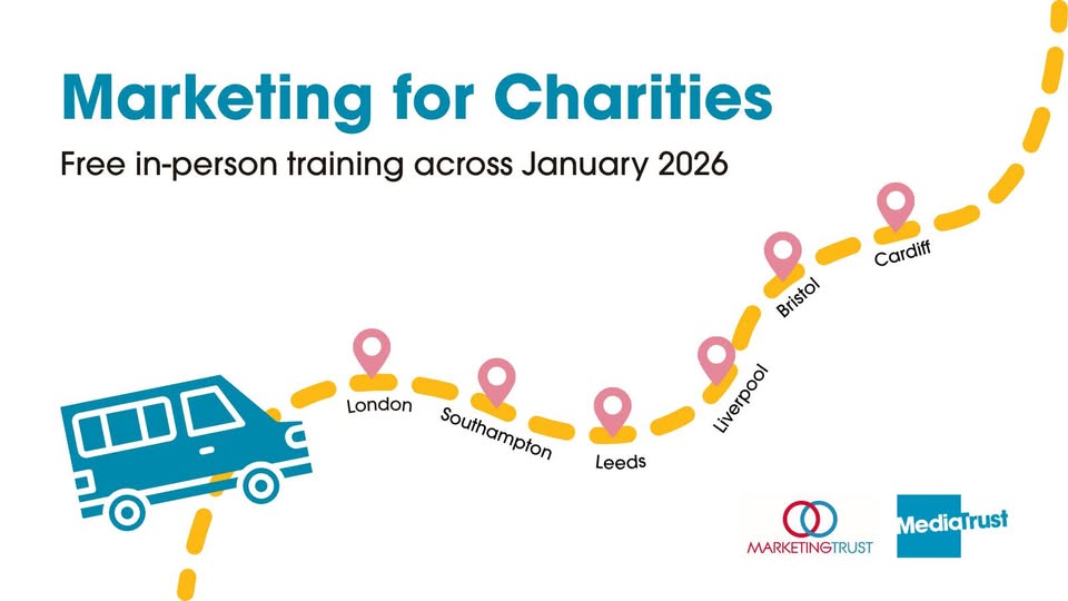 Media Trust is hitting the road! 🗺️ We’re bringing our FREE, in-person, expert-led marketing training directly to charities across the UK. Whether you want to sharpen your Digital Marketing skills or strengthen your Marketing Essentials, our practical workshops will give you the tools to reach more supporters, grow your community, and increase your impact. Marketing Essentials with Amanda Jones: 🔵 London, Wednesday 14 January 🔵 Southampton, Wednesday 21 January Digital Marketing with Andrew Davis: 🔵 Leeds, Monday 26 January 🔵 Liverpool, Tuesday 27 January 🔵 Bristol, Thursday 29 January 🔵 Cardiff, Friday 30 January 🚨 Each session has just 15 spaces - so don’t miss out! Find out more and book your free place here: https://mediatrust.org/communications-support/training-courses/marketing-for-charities-training/ These training sessions are proudly funded by Marketing Trust. (fb)