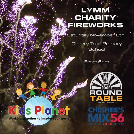 The Lymm Charity Fireworks, sponsored by Kids Planet Lymm, is this coming Saturday!! Tickets are nearly sold out, so please get yours now to avoid disappointment. https://www.lymmroundtable.co.uk/events/charity-fireworks/ (fb)