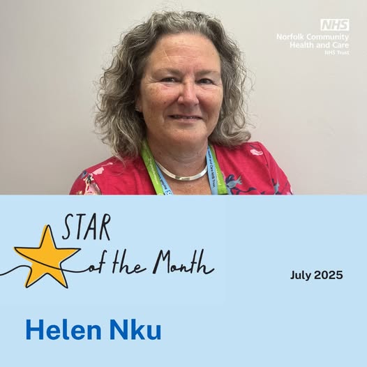 ⭐Congratulations to our STAR of the Month winner for July, Helen Nku, Head of Integrated Care, South Place. Helen was nominated by several colleagues for her leadership, support and dedication. Described as the "glue" holding the team together during challenging times, Helen always puts people first, guiding her team with compassion, and leading by example. Well done Helen Read the full story here>>www.norfolkcommunityhealthandcare.nhs.uk/star-of-the-month (fb)