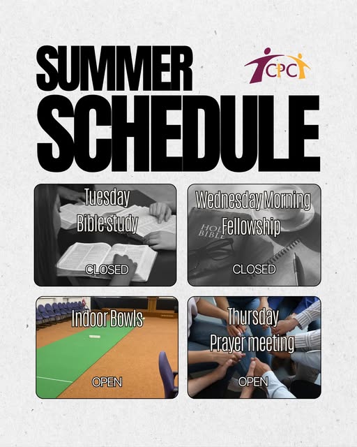 Just a reminder that our Tuesday evening bible study and Wednesday morning fellowship are closed until September. (fb)