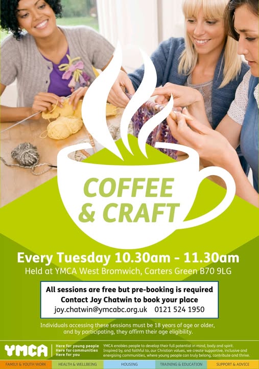 Join us every Tuesday for a fun-filled Coffee & Craft Session! 🎨☕ Come unwind, make new friends, and get creative with various crafting activities while sipping on delicious fresh espresso from our coffee shop. To reserve your spot, just reach out to Joy at joy.chatwin@ymcabc.org.uk or call 0121 524 1950. We can't wait to see you there! #CoffeeAndCraft #CraftingCommunity #CreativeSessions #EspressoLovers #UnwindAndCreate #MakeNewFriends #TuesdayVibes #JoyfulCrafting #YMCAEvents #ArtAndCoffee (fb)