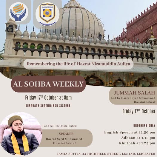 🕌 Al-Sohba Weekly, Friday 17th October at 8pm in Jamia Sufiya (Leicester, UK) 🕌 (fb)