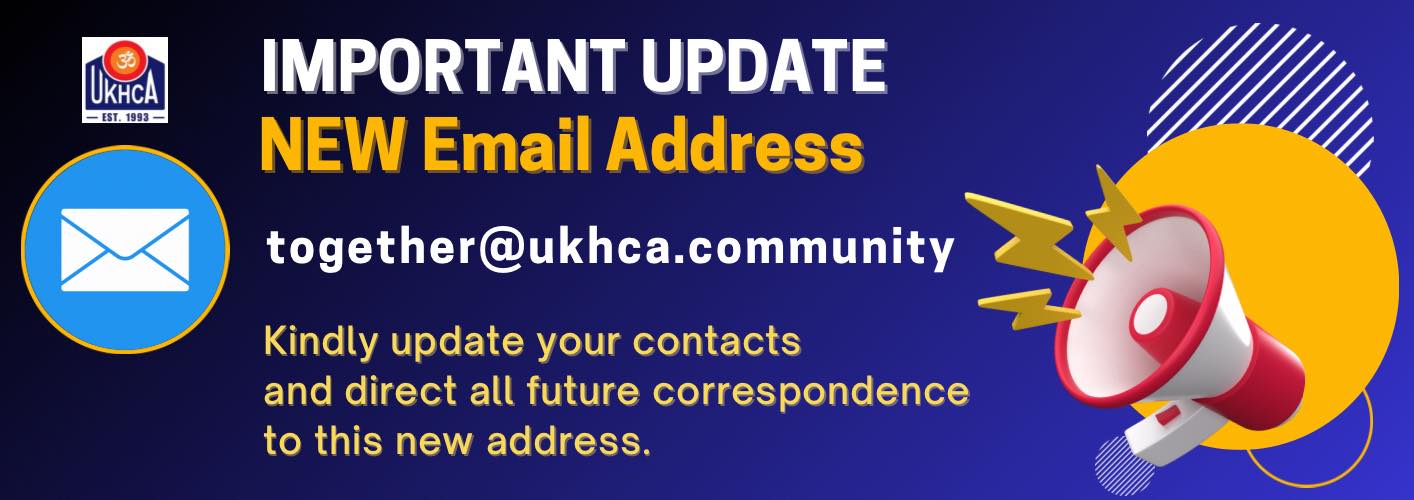 📣New UKHCA Email Address📣 UKHCA is moving to a domain based professional email address for all public facing communications. The new email address is: together@ukhca.community Please add together@ukhca.community to your contacts to ensure UKHCA communications easily reach your inbox, and direct all future correspondence to this email address. Thank you for your support as we start our preparations for the upcoming Durga Puja.🙏 www.ukhca.community (fb)