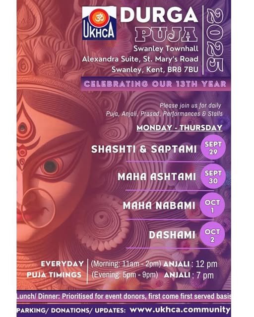 📣✨*UKHCA DURGA PUJA 2025 - SAVE THE DATES*✨📣 🛕With Rath Yatra done, the countdown to our favourite festival begins! Back home, this is when the first preparations for Durga Puja get underway… And right here at UKHCA too- it’s time to say it loud: *Ma Aschhen!*🙏🔱🪷 As always, we’ll celebrate with devotion, joy, music, food, and the warmth of our wonderful community.❤️ More details will follow soon. But for now, let the anticipation begin! 🙏🙏🙏 (fb)