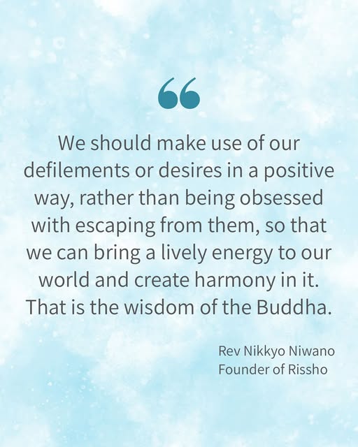 🗣️We should make use of our defilements or desires in a positive way, rather than being obsessed with escaping from them, so that we can bring a lively energy to our world and create harmony in it. That is the wisdom of the Buddha. Rev Nikkyo Niwano Founder of Rissho Kosei-kai ーーー #buddhist #buddhism #buddhistuk #buddhismuk #buddhistcentre #buddhisttemple #buddhistlondon #buddhistcentrelondon #risshokoseikai #rklondon #dharma #lotussutra #namumyohorengekyo #nmhrgk #nmrk #nmhrk #threefoldlotussutra #nichirenbuddhism #kosenrufu #todaysdharmaword #wordoftheday #meditation (fb)