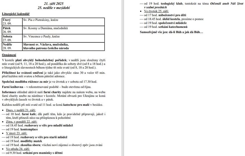 ohlášky - 21. září 2025 25. neděle v mezidobí (fb)