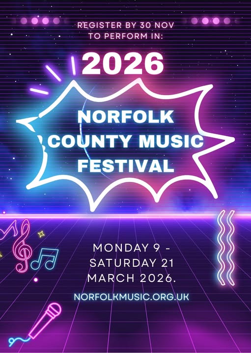 Sorry this product is unavailable. Please choose a different combination. Norfolk County Music Festival 2025 The 2025 festival will run from Monday 10 to Friday 21 March. We are also delighted to be holding a musical celebration featuring compositions from Special School pupils on Monday 17 March called Crescendo.