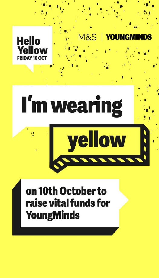💛💛 Don’t forget that we will be supporting Hello Yellow tomorrow, children and staff can wear mufti with something yellow, in exchange for a small donation. 💛💛 Link for donations below; https://fundraise.youngminds.org.uk/fundraisers/ameliaholdcroft/hello-yellow?enref=1f0645c8834af1173410d48ca24478b1 (fb)