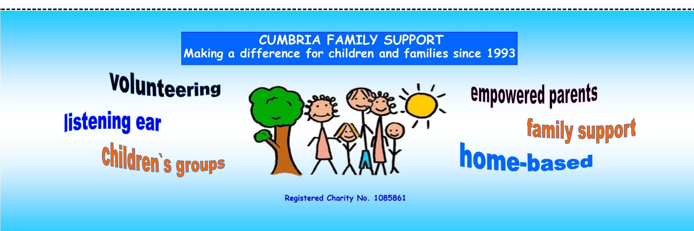 Welcome to Cumbria Family Support Children are the focus of our work Volunteering is at the heart of what we do. Feedback from Service Users Welcome to Cumbria Family Support Our Proud History Cumbria Family Support has been supporting children and families in Cumbria since 1993. Cumbria Family Support helps families with children in Cumbria to get through difficult times. Our staff and trained volunteers provide support to families in their own homes until their difficulties have passed.