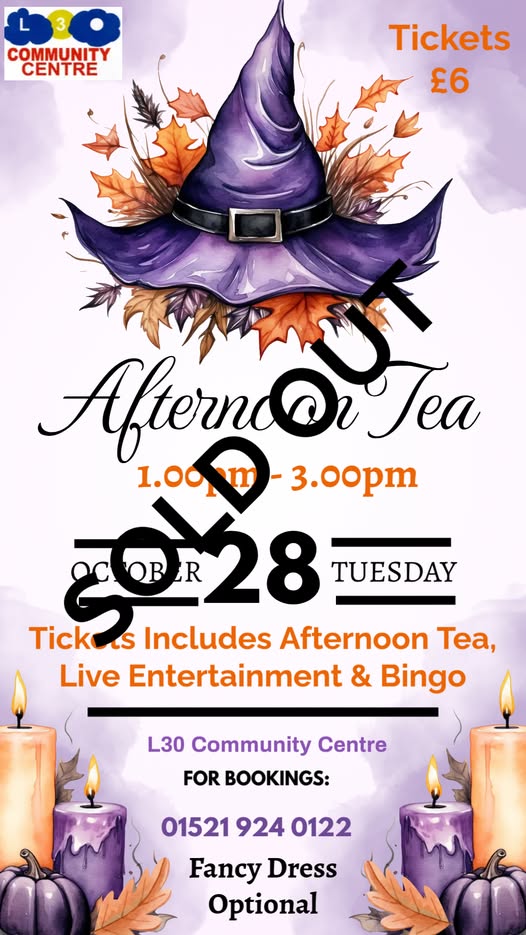 We are really sorry but the afternoon tea has sold out. Dont forgrt fancy dress is optional, there will be a prize for best costume. 😀 (fb)