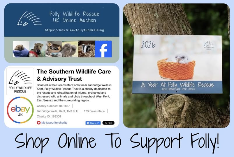 Shop Online To Support Folly! Our wonderful Calendar shows a ‘A Year At Folly Wildlife Rescue’ with each month featuring one of the animals or birds in our care this year. Buy yours now from our reception or online from https://fwrt.org.uk/seasonal-calendar/ Our Folly Wildlife Rescue UK Online Auction here on Facebook runs weekly from Sundays to Fridays. Each week dozens of good quality preloved and brand new items are sold. Postage is available across the UK or purchases can be collected from Follymor one of our local collection points. Our eBay charity sales feature a regularly changing selection of quality items and collectibles. Check it out regularly and don’t forget to make us your favourite charity! https://charity.ebay.co.uk/charity/i/The-Southern-Wildlife-Care-&-Advisory-Trust/169309 All proceeds go 100% to support the vital work we do with wildlife 💕🦔 (fb)