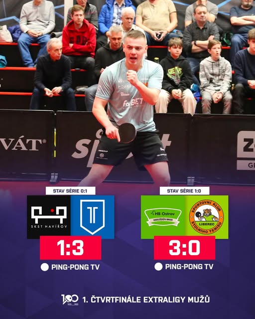HB Ostrov Havlíčkův Brod začal čtvrtfinále domácí výhrou, TTC-Ostrava 2016 veze první bod z Havířova 👊🏻 Souhrn 📲 https://www.ping-pong.cz/article/ostrava-veze-vyhru-z-havirova (fb)